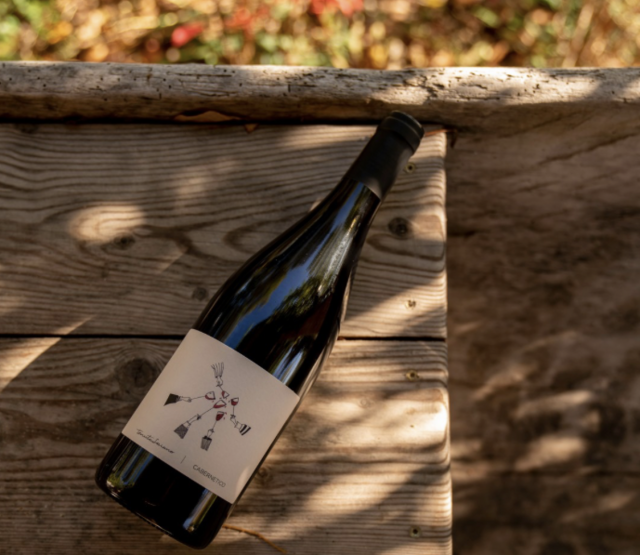 手摘みで収穫したカベルネ・ソーヴィニョンとカベルネ・フランの全房で優しくプレスし、飽和状態のステンレスタンクでカルボニックマセラシオン。